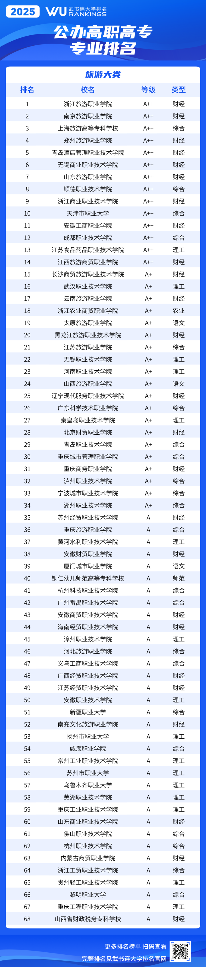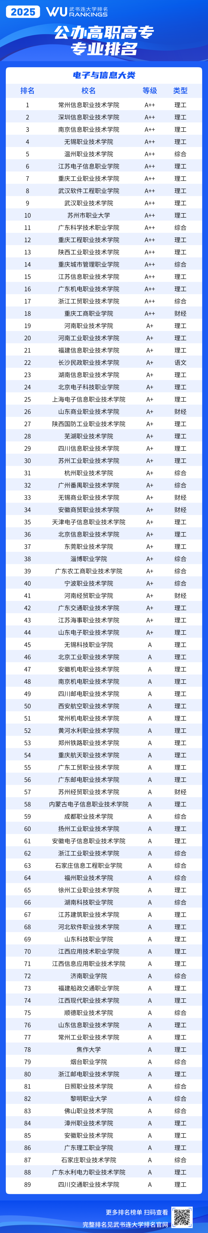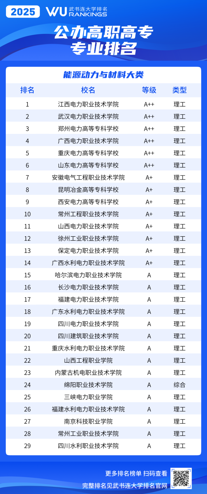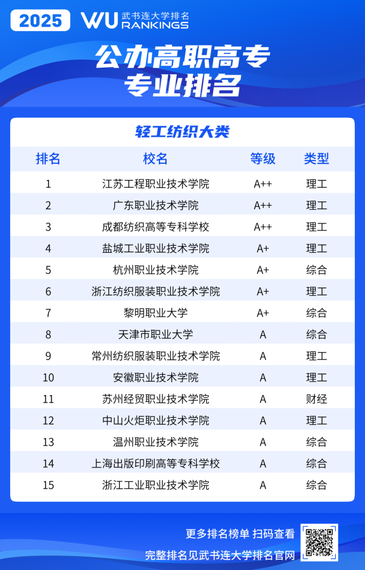 《武书连2025中国高职高专职业大学专业排名》采用等级方式表示专业位置。等级分为A++、A+、A、B+、B、C+、C、D+、D、E+、E、E-,共5等12级。