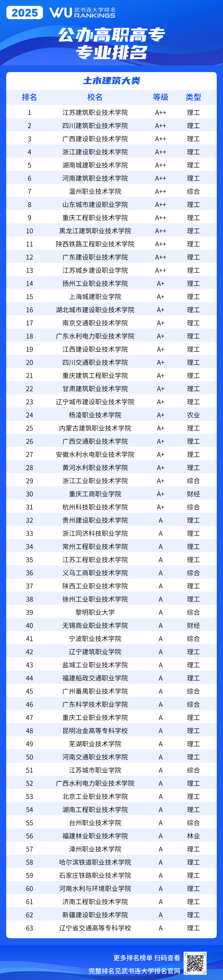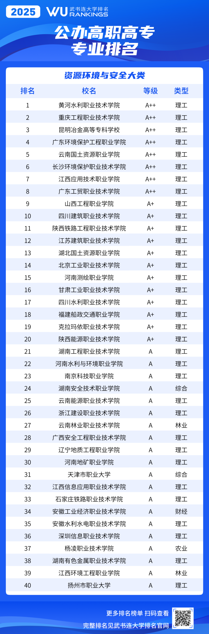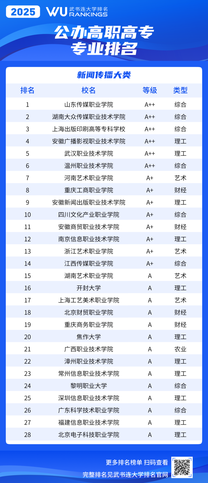 《武书连2025中国高职高专职业大学专业排名》采用等级方式表示专业位置。等级分为A++、A+、A、B+、B、C+、C、D+、D、E+、E、E-,共5等12级。