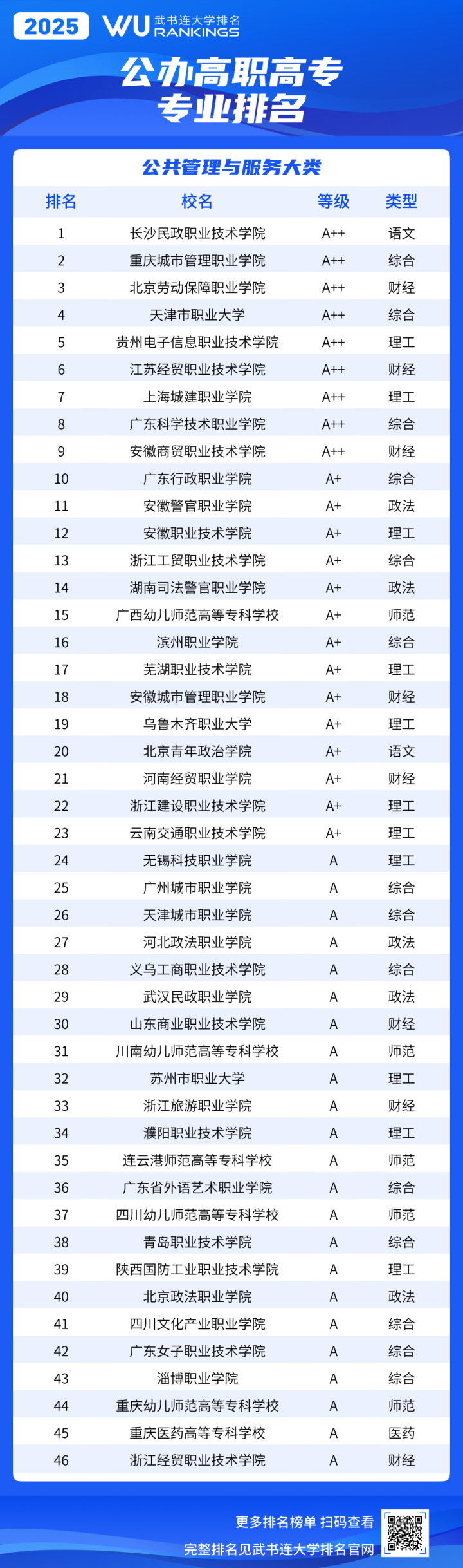 公共管理与服务大类排名